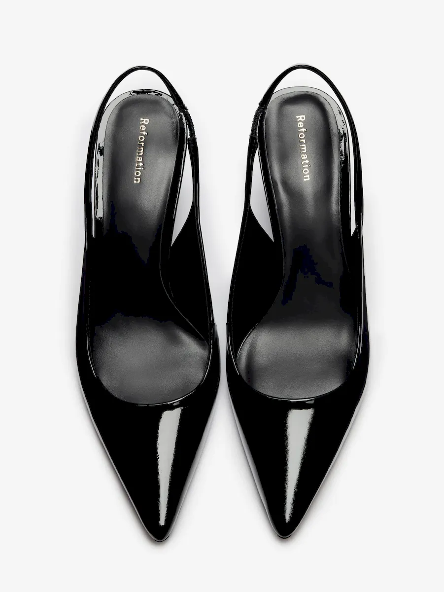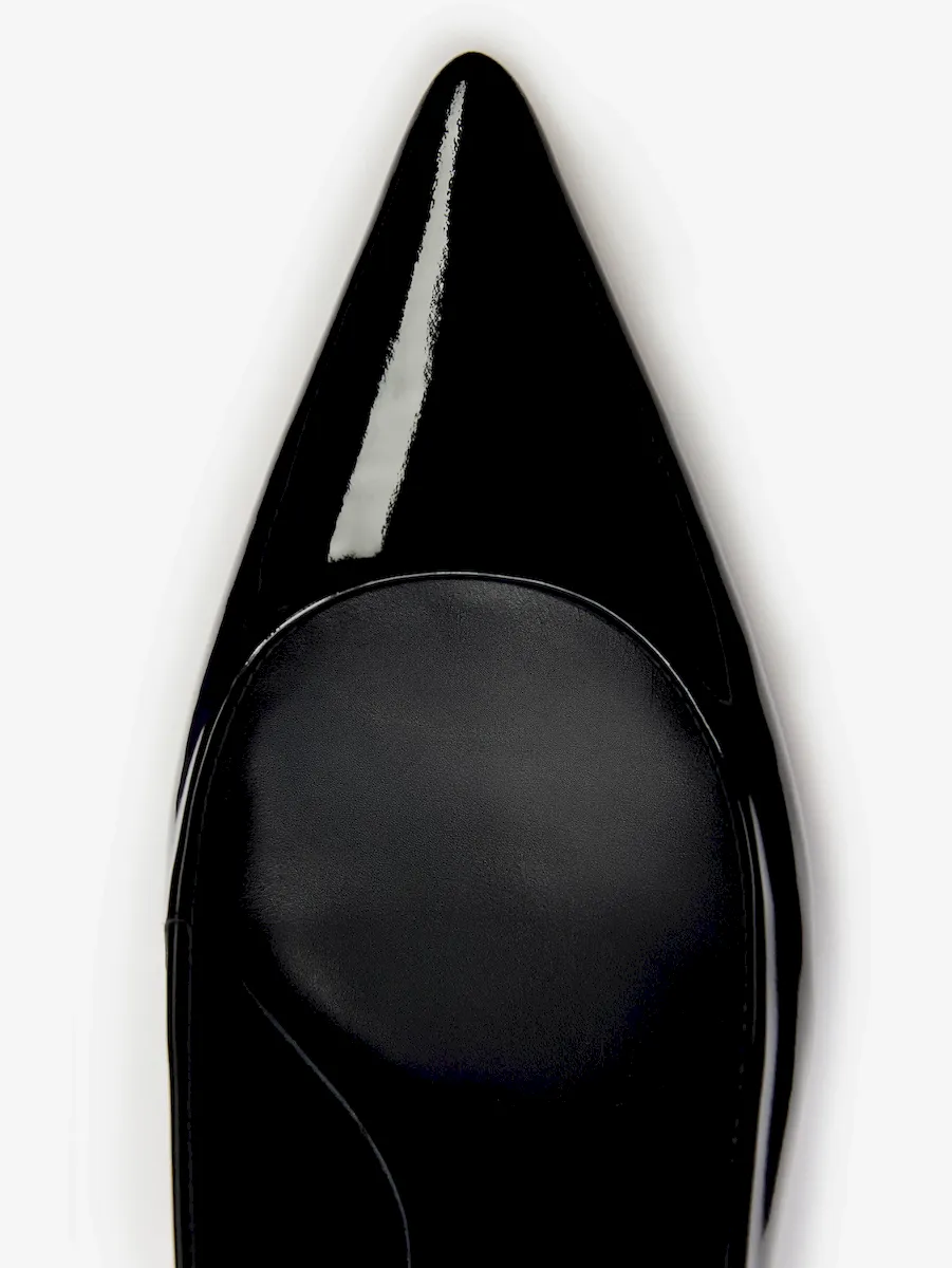 Bovine leather with lustrous patent finish.