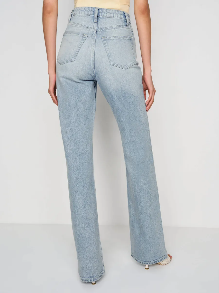 product size: 27, inseam: 33″, front rise: 12 5/8″, leg opening: 20″.