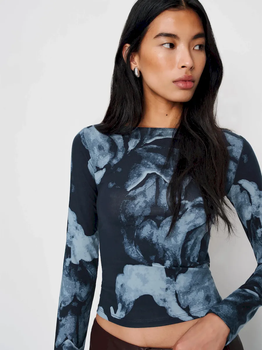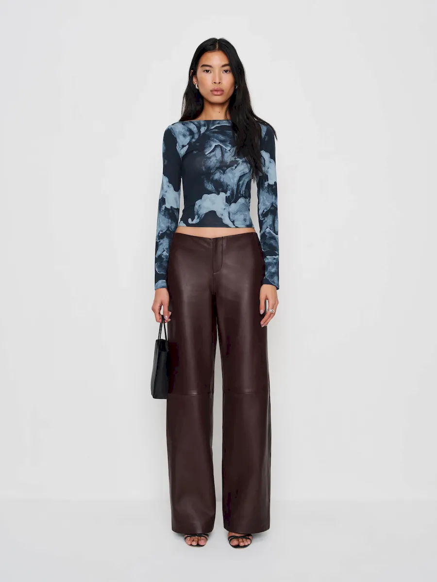 The model is wearing a size XS and is 5’10”, 24.5″ waist, 34.5″ hips, 31″ bust.