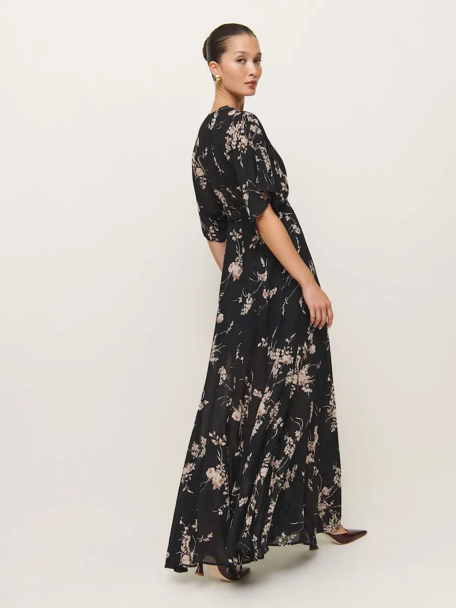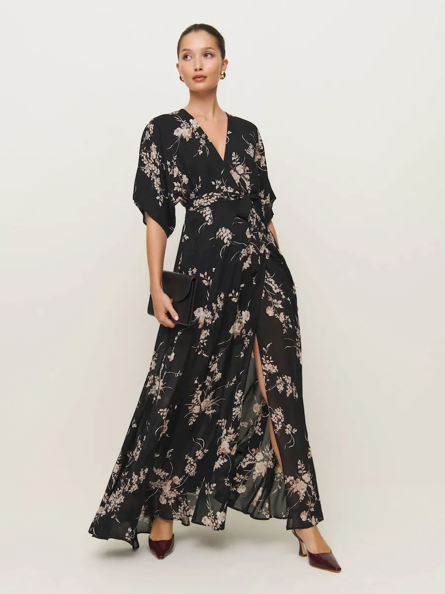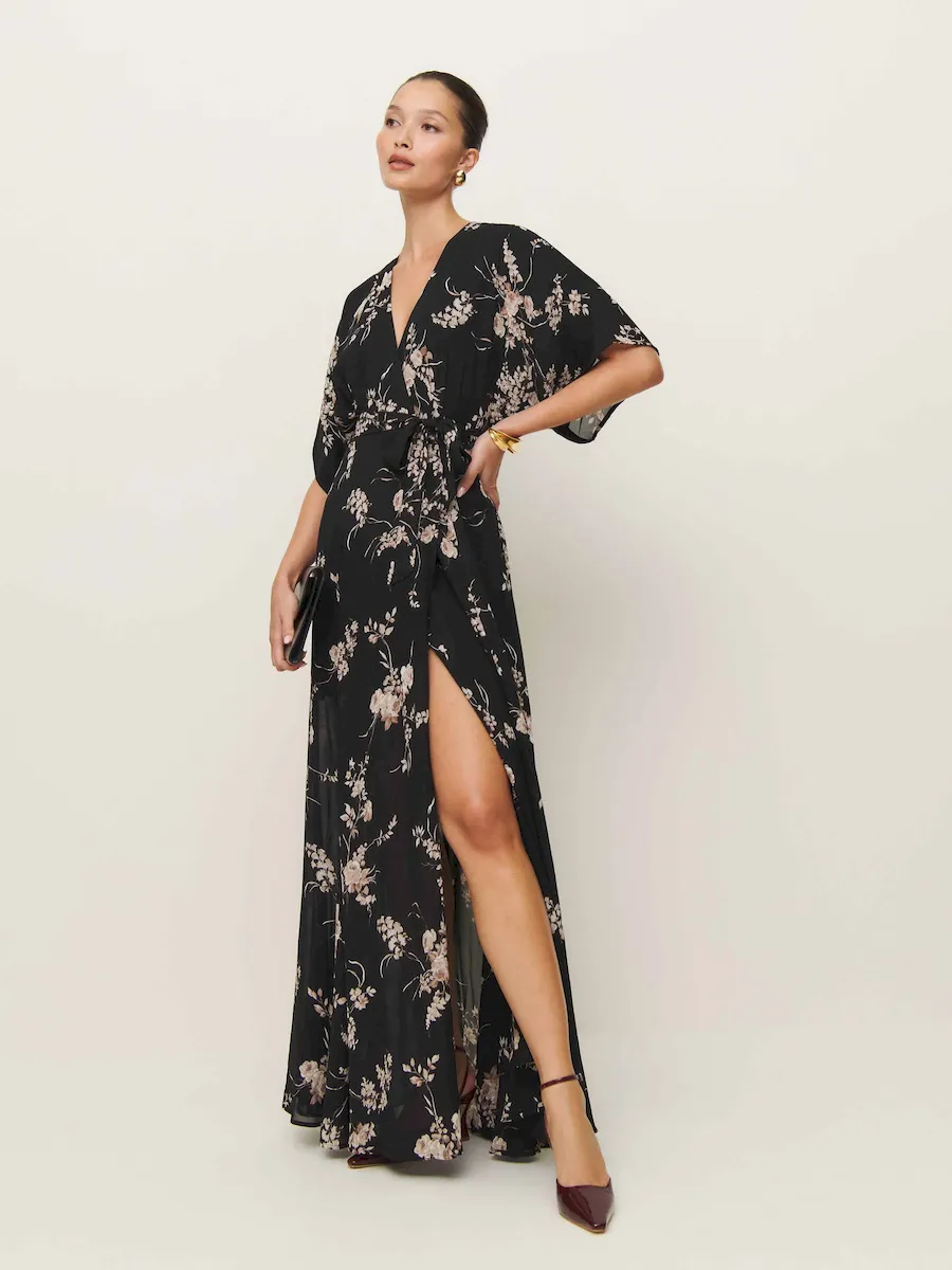 The model is wearing a size XS and is 5’9″, 24″ waist, 34″ hips, 31″ bust.
