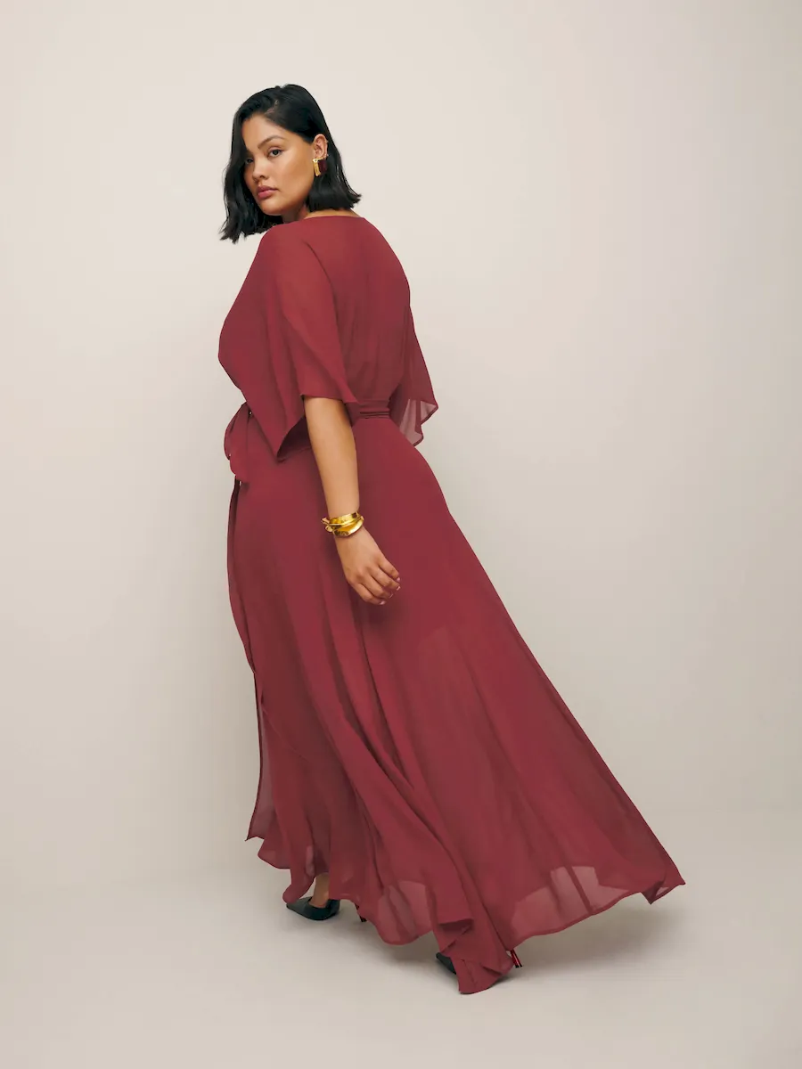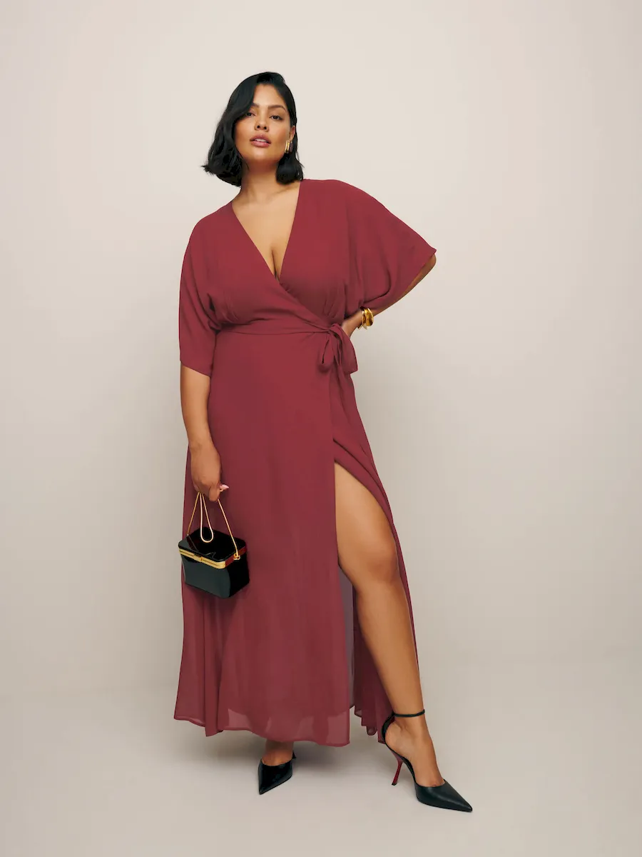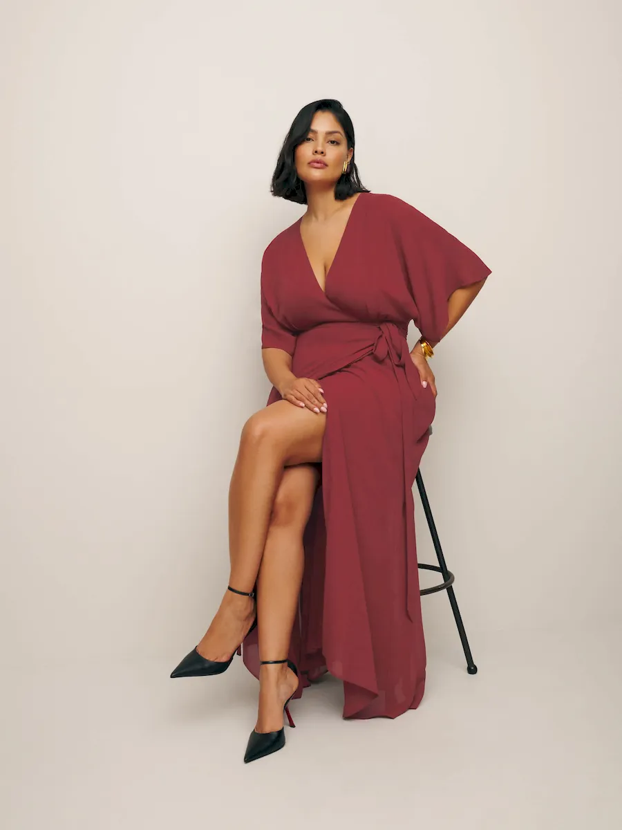 The model is wearing a size 1X and is 5’10”, 34″ waist, 49″ hips, 42″ bust.