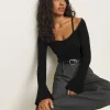 The model is wearing a size 0 and is 5’9″, 24″ waist, 34″ hips, 31″ bust.