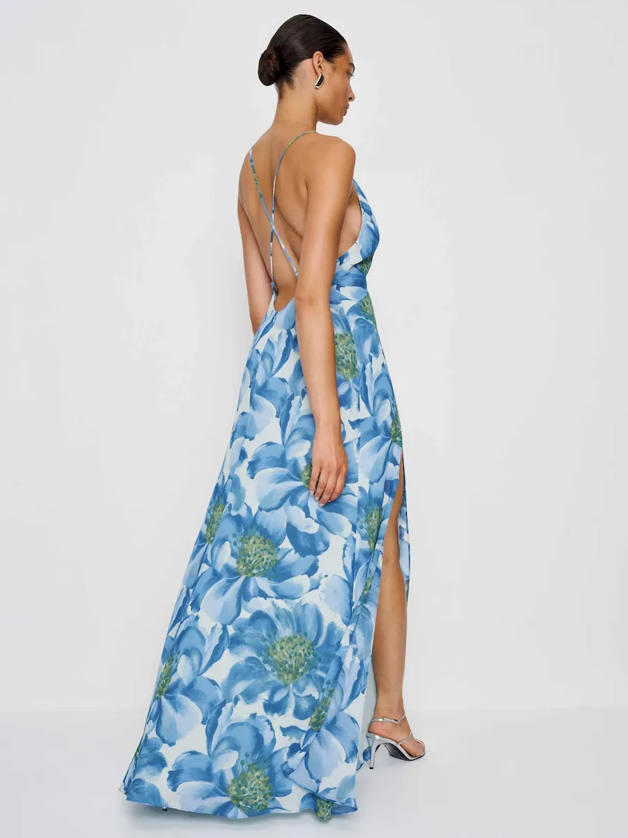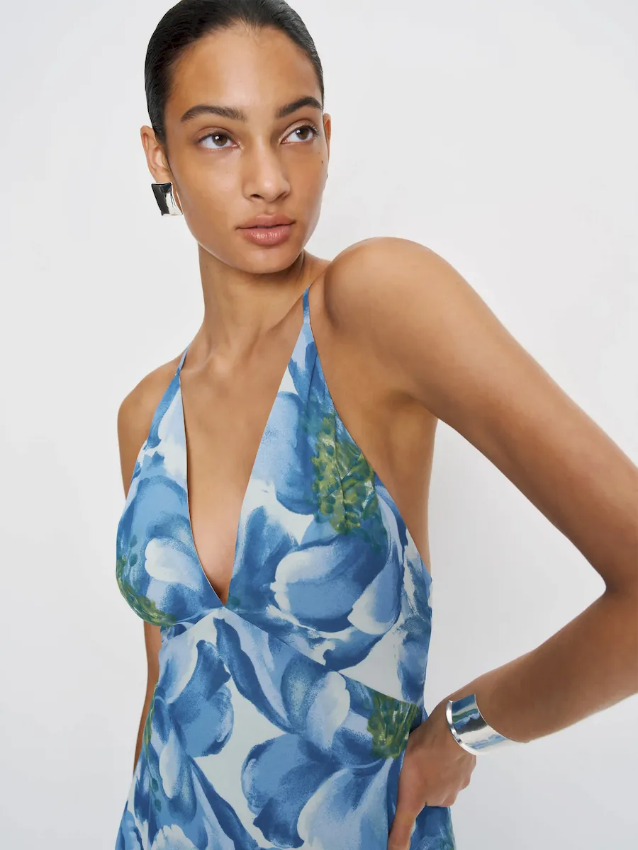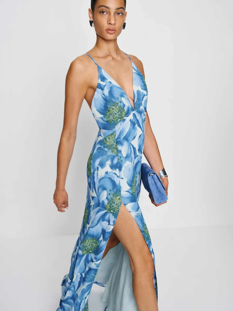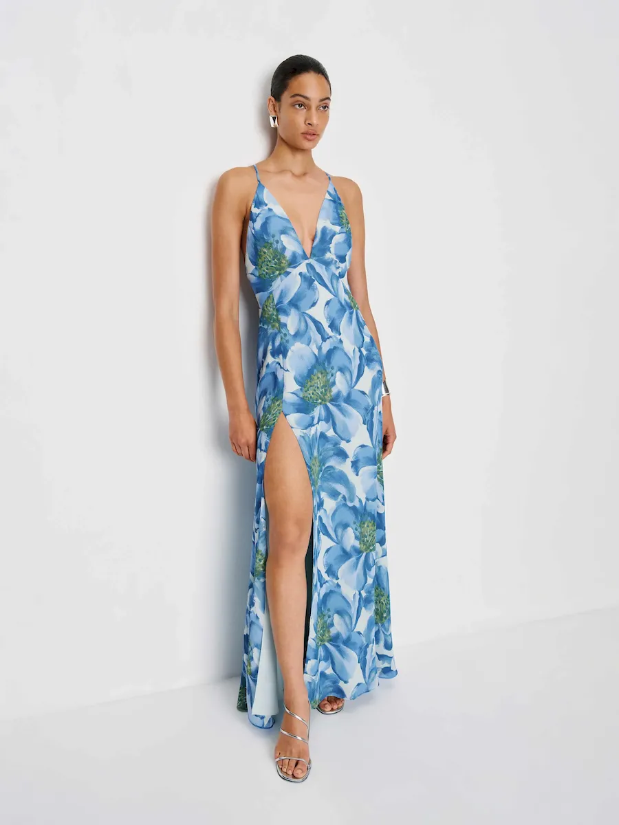 adjustable straps, deep v neck, side slit.