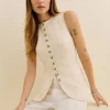 The model is wearing a size 0 and is 5’10”, 25″ waist, 35″ hips, 32″ bust.