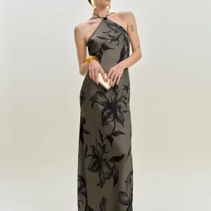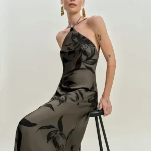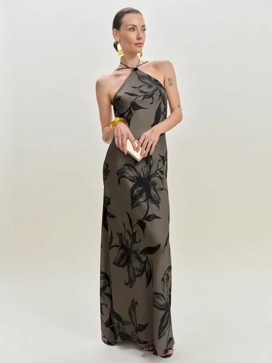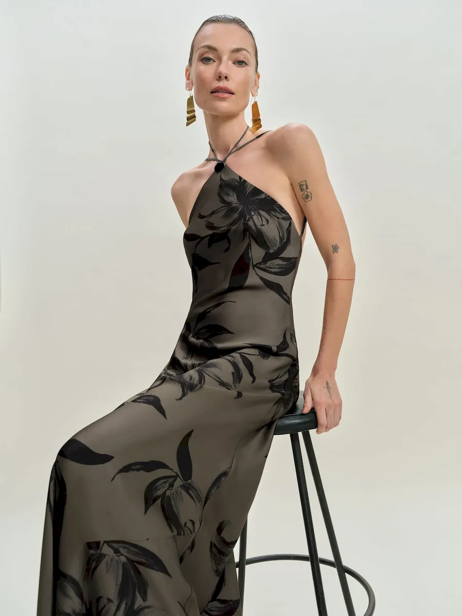 adjustable straps, halter neckline.