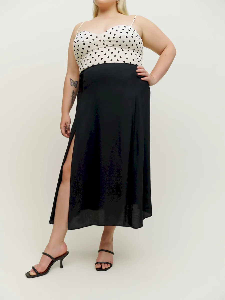 back zipperand high slit.